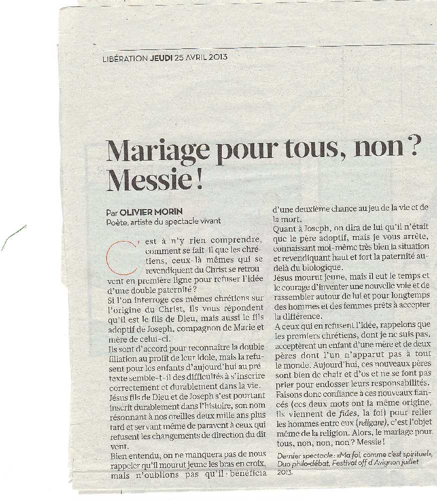 "Mariage pour tous, non, non, Messie !!"
